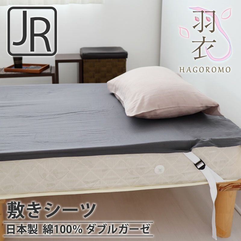 細い糸を使用した、いつものガーゼとはひと味違う、さらり滑らかな肌触りのダブルガーゼの敷きシーツ(四隅ゴム付きシーツ)ジュニア・セミシングルサイズ。従来より約30%も軽いので、寝がえりのじゃまもせず、1年中ご使用いただけます。四隅のゴムで着脱も楽々!日本製