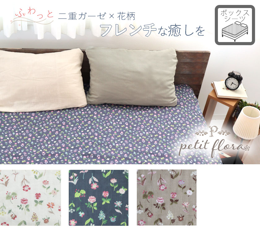かわいいお花がぎゅっと詰まったフレンチカジュアルなお花柄!無地のカバーとのコーディネートも楽しめて、洗うたびにふっくらふわふわ綿100%ダブルガーゼの日本製ボックスシーツベビー