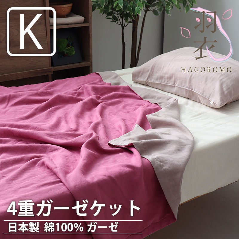 リバーシブルで気分にあわせて使い分け!オーガニックコットン100%のとっても軽くて柔らかい極細の80番手糸を使用した肌触りのダブルガーゼを2枚はり合わせた、4重ガーゼケット日本製のキングサイズ。