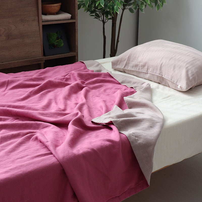 気分にあわせて使い分けできるリバーシブル仕様。オーガニックコットン100%のとっても軽く柔らかく極細の80番手糸を使用した肌触り。適度な保温性をもつダブルガーゼを2枚はり合わせた、4重ガーゼケット日本製のクイーンサイズ。