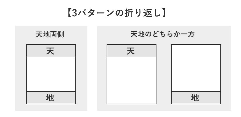 天地折り返しの幅と箇所をお選びいただけます