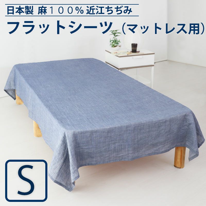 いろんな使い方ができる万能なフラットシーツ!触れるとひんやり、暑く蒸し暑い夏におすすめの近江ちぢみ!伝統の技法、近江ちぢみのシボで肌にはりつかず、ひんやり涼しい麻100%の生地です。マルチカバーやベッドスローとしてもお使いいただけます。シャリ感、清涼感たっぷり、見た目も涼しいカラーで暑い夏も快適にお過ごしください。お部屋の印象も爽やかに涼しく感じさせてくれます。1cm単位でサイズを選べるので、用途に合わせてお選びください。