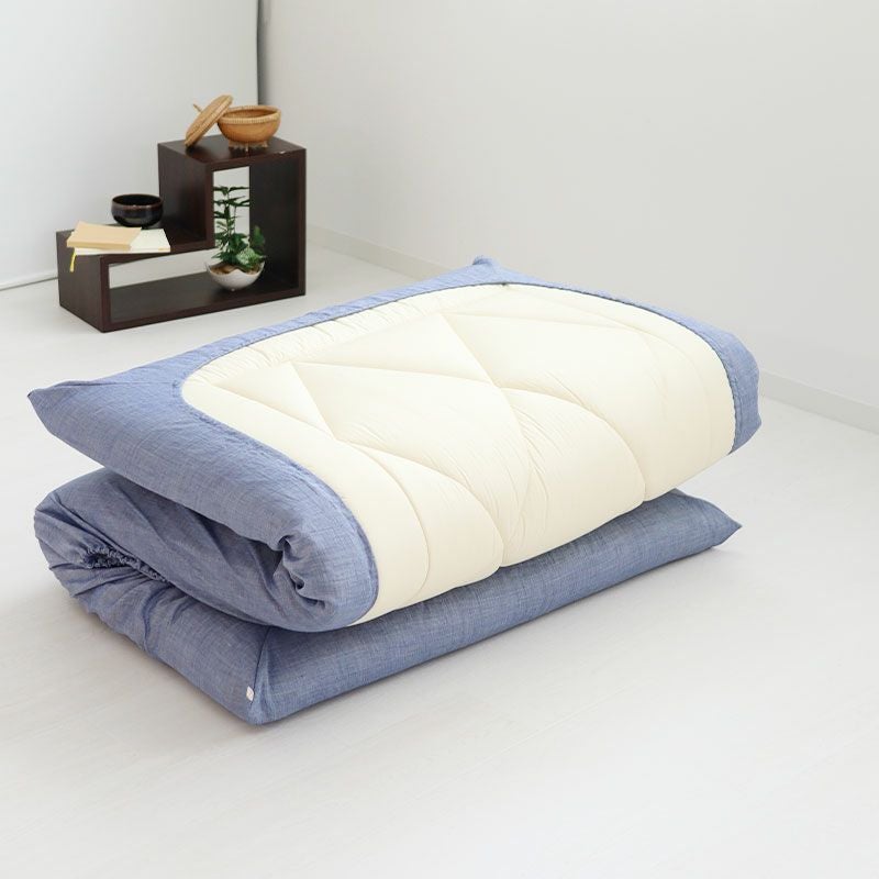 密度を表す数値、スレッドカウント※の高い生地がいいというわけではありません。羽毛布団をお使いなのに、スレッドカウントの高い生地を使って羽毛がつぶれたり重すぎて快眠を妨げたりする場合もあります。この道70年以上の実績から生み出された近江ちぢみは夏に最適の軽さと通気性、そして涼感をかねそなえた麻生地になっています。