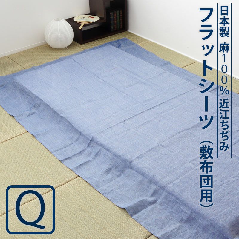 夏の定番、べたつきにくく快適な近江ちぢみのクイーンサイズの敷き布団用フラットシーツです。麻ならではのひんやり感で涼しく、抜群の吸放湿性で蒸れにくいのが特徴。安心安全の日本製でサイズオーダー対応!
