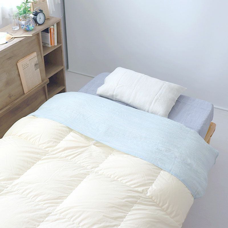 伝統の技法、近江ちぢみのシボで肌にはりつかない、寝返りするたび、ひんやり涼しい麻100%の生地です。シャリ感、清涼感たっぷり、見た目も涼しい夏におすすめの日本製シーツや枕カバー、布団カバーなどの商品ラインナップです。
