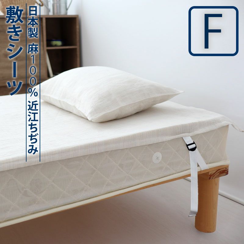 大きいサイズの寝具にも対応!複数の寝具を1枚にまとめて使いたい方に!大きなサイズも1枚布なのでお洗濯しやすい!近江ちぢみ麻100%で汗をかいても肌にはりつかず、ひんやり快適。脱着楽々な敷きシーツ(四隅ゴム付きシーツ)ファミリー・複数連結サイズ。日本製