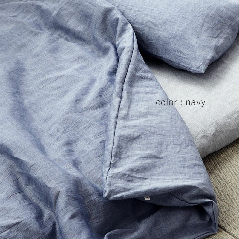 ひんやり涼しい麻100%の先染めリネンの掛け布団カバーシングルサイズ。クールクラッシュ加工で麻のチクチク感が苦手な方にもおすすめなカバーです。