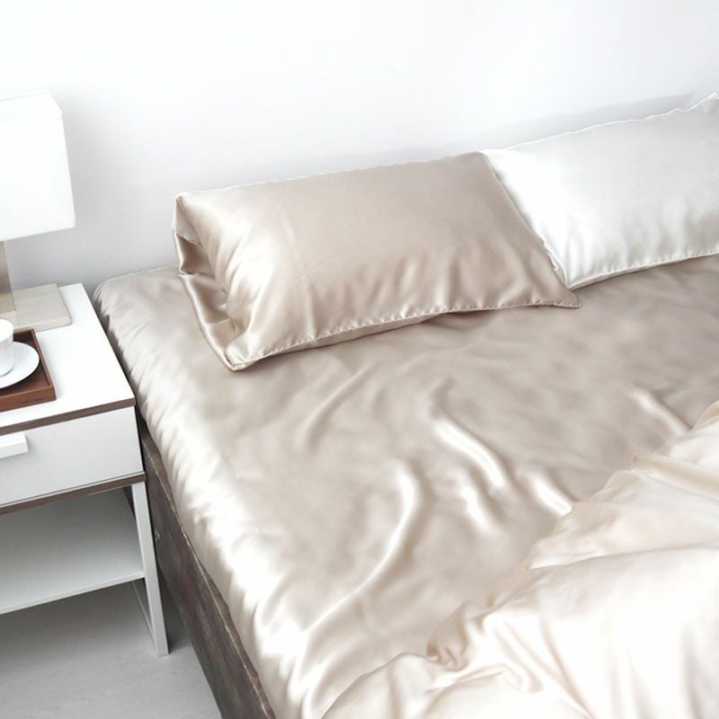 毒素排出・美肌効果と極上の光沢でお部屋をグレードアップ!なめらかな肌触りが心地よいシルク絹100%サテン織の日本製、全2色ボックスシーツファミリー