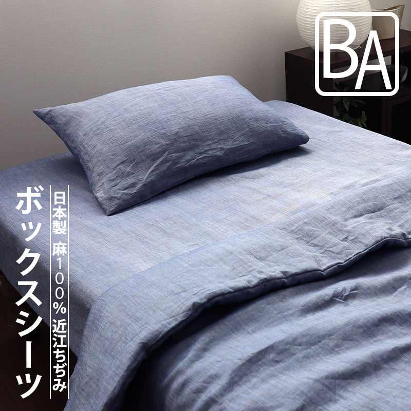 清涼感たっぷりの近江ちぢみのベビーサイズのボックスシーツです。麻ならではのシャリ感ではりつかず、優れた吸放湿性で快適に夏をお過ごしいただけます。安心安全の日本製でサイズオーダー対応!