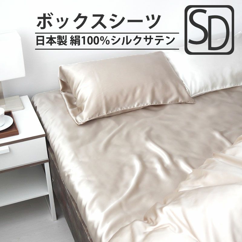 毒素排出・美肌効果となめらかな肌触りが心地よい!極上の光沢でお部屋をグレードアップのシルク絹100%サテン織の日本製、全2色ボックスシーツセミダブル