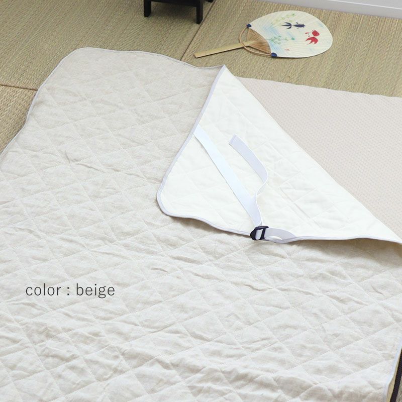 麻は天然繊維の中でも最も吸湿性に優れており、汗をかいてもサラサラ。その通気性と接触冷感はまさに天然のクーラー。細番手のラミーを100%使用したリネンのキルト生地で汗をかいてもべたつかず夏を爽やかに過ごして頂けます。