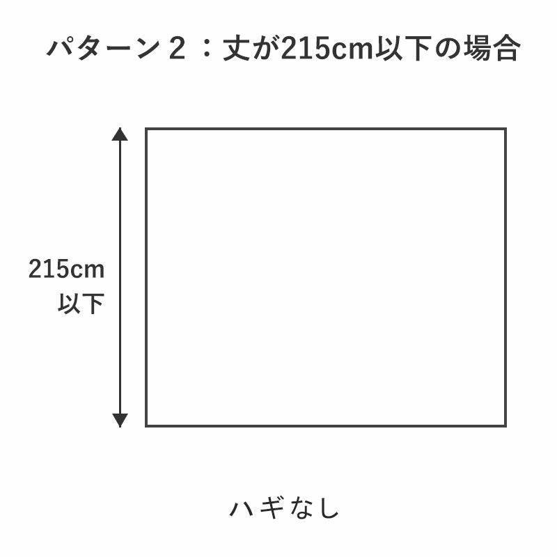丈が215cm以下の場合は幅の長さに関わらずハギが入りません。