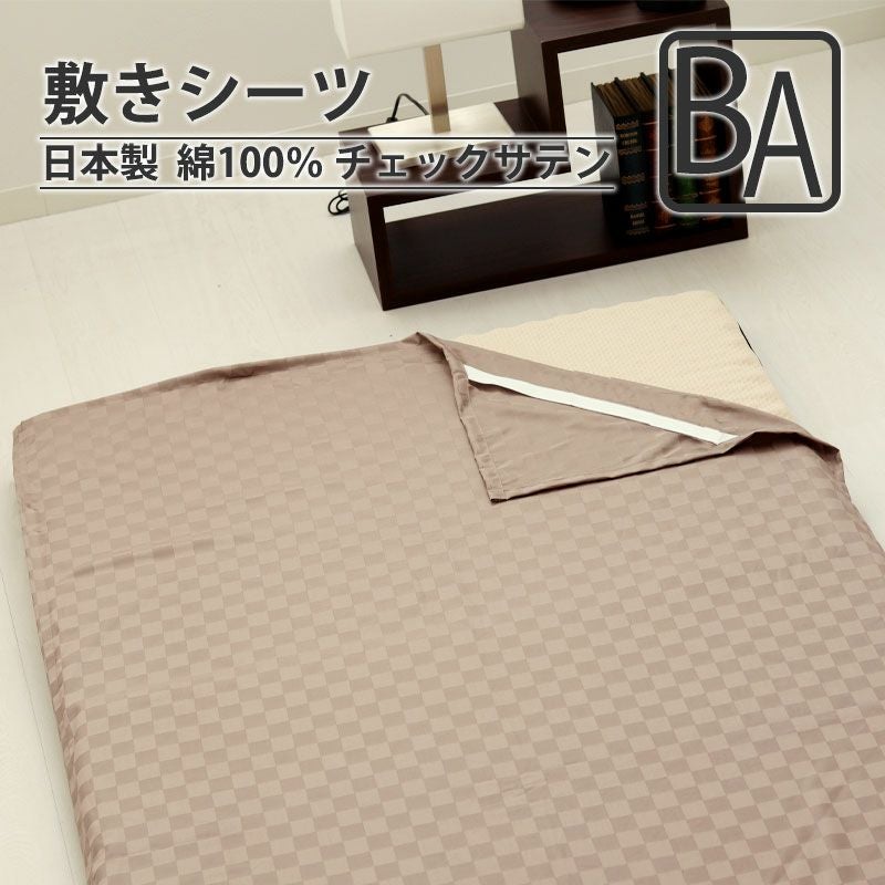 脱着もお洗濯も楽々な敷きシーツ(四隅ゴム付きシーツ)!アジャスター付きゴムなので、寝具にぴったりフィット。昼夜織りの上質サテンのコントラストでつくる、ホテルライクな寝室、綿100%日本製、スタイリッシュな格子柄 chess ベビーサイズ