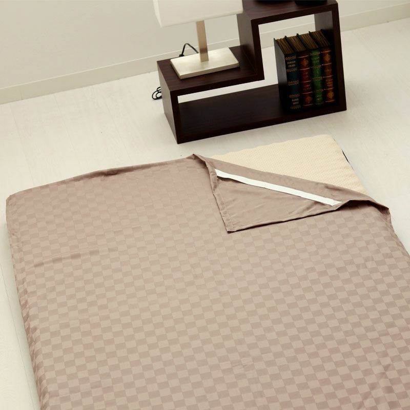 実際に京都木屋町にある旅館さんでご利用いただいているこちらのカバーは、カバーをかけるだけでホテルライクな寝室になる美しい格子の織り柄が魅力です。天然の油脂分が多い種類のコットンの長綿100%を使用し、柔らかな肌触りとすばらしいドレープ性で、人と布団との隙間をほどよくうめて、寝返りをしても空気が入り込みにくく、オールシーズン使えます。