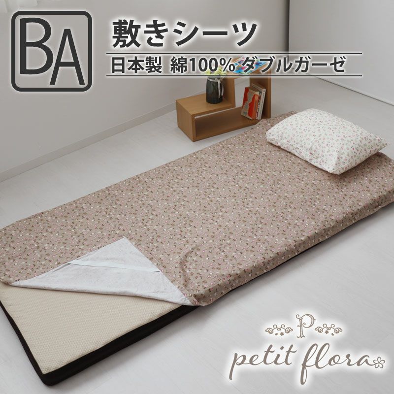 四隅ゴム付き敷きシーツで楽々着脱!様々な花柄をつめこんでお子さま用にもぴったりなかわいいダブルガーゼ、ベビーサイズ。綿100%で洗うほどにふっくら柔らかい肌触り。日本製