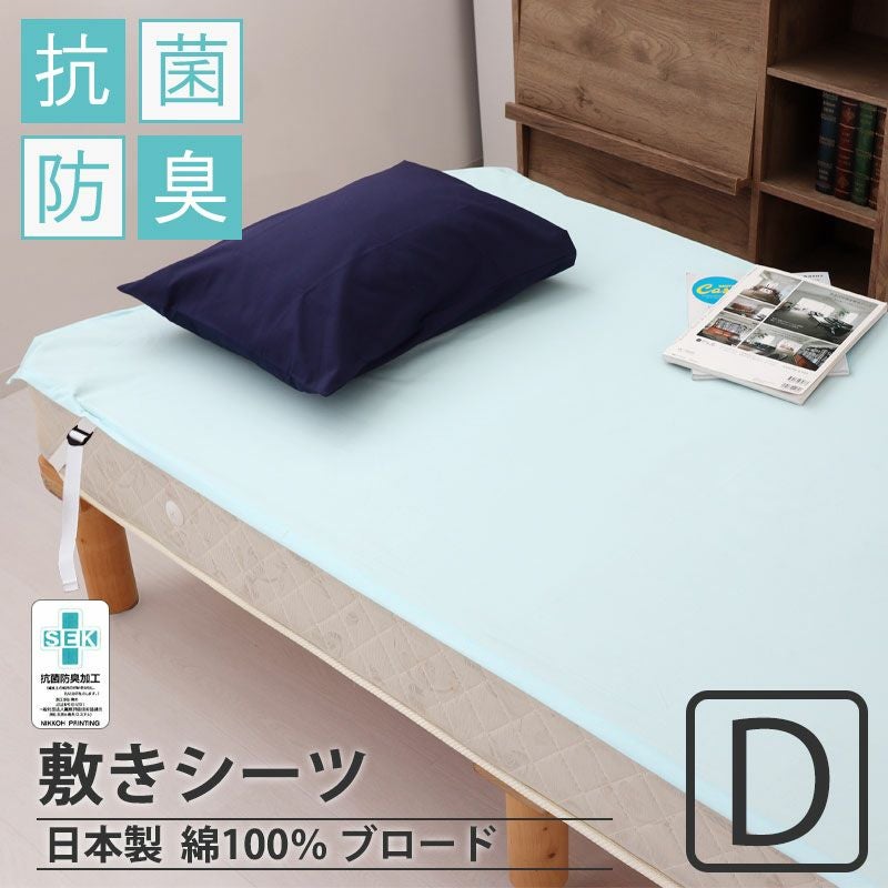 お洗濯も着脱も簡単にできる、敷きシーツ(四隅ゴム付きシーツ)ダブルサイズ。さらりとした肌触りで、インテリアにマッチする無地全9色綿100%!ブロード織りの日本製
