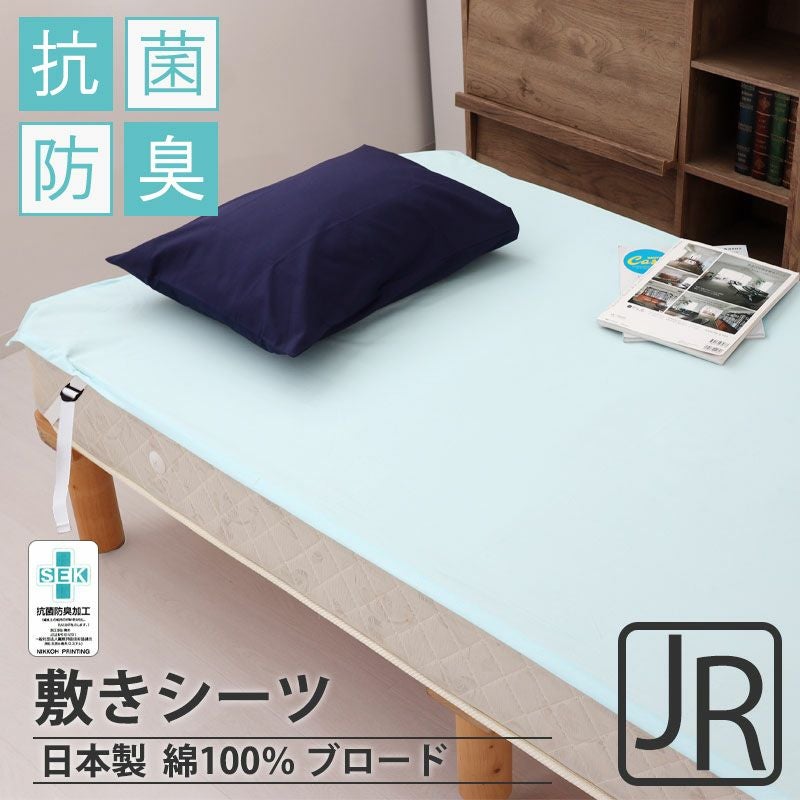 お洗濯も付け外しも楽々な、敷きシーツ(四隅ゴム付きシーツ)ジュニア・セミシングルサイズ。さらりとした肌触りで、インテリアにマッチする無地全9色綿100%!ブロード織りの日本製