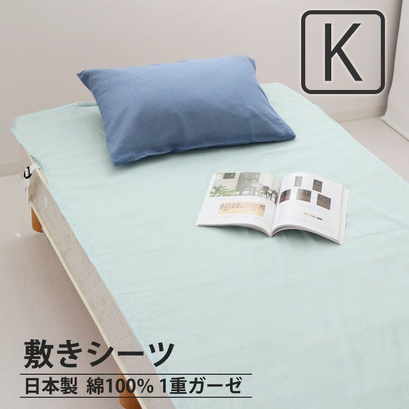 一重ガーゼのしなやかでサラッとしたやさしい肌触り。お洗濯とシーツ脱着の負担も軽減します。細番手のオーガニックコットン100%使用の高品質なアジャスター付きゴムでしっかりフィットする敷きシーツ(四隅ゴム付きシーツ)。キングサイズ。日本製