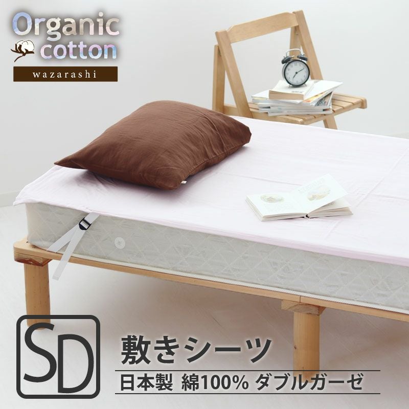 しっかりフィットするアジャスター付きゴムで高品質なトルコオーガニックコットン使用の綿100%ダブルガーゼ敷きシーツ(四隅ゴム付きシーツ)セミダブル。やわらかくしなやかな肌触りで1年中快適に。日本製