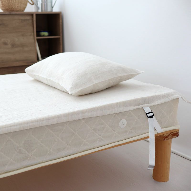 1枚布でお洗濯もしやすく、脱着楽々な敷きシーツ(四隅ゴム付きシーツ)シングルサイズ。シャリ感のある肌触りで汗をかいても蒸れず、夏もひんやり涼しい、近江ちぢみ麻100%の日本製