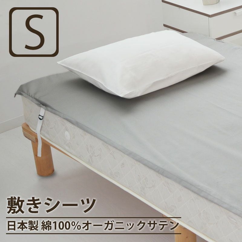 アジャスター付きゴムでしっかりフィットし、シーツ脱着もお洗濯の負担も軽減する敷きシーツ(四隅ゴム付きシーツ)。オーガニックコットン、超長綿100%でコットンなのにまるでシルクのよう。日本製、インドオーガニックサテンBijour(ビジュー) 敷きシーツ シングルサイズ