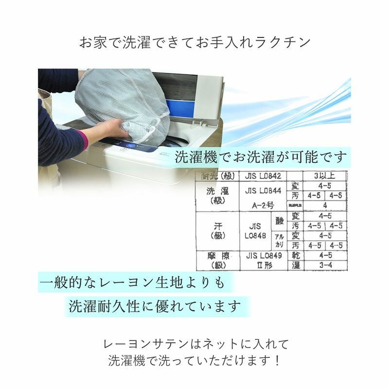 一般的なシルクやレーヨンは機能性に優れる反面、デリケートで洗濯機で洗えないものも。当店のレーヨンサテンはネットに入れて洗濯機で洗っていただけます!