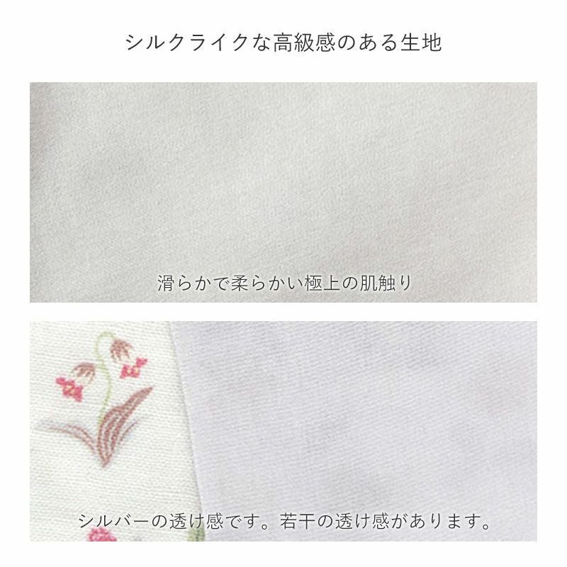 シルクのような美しい光沢がありつつ、素肌に寄り添うふわっとソフトな肌触りが特徴のレーヨンサテン。つるつるすべすべなのでノンストレスな寝心地で寝返りも打ちやすい!夏を快適に過ごせる素材でとろみ感もあり、エレガントな印象も与えてくれます。