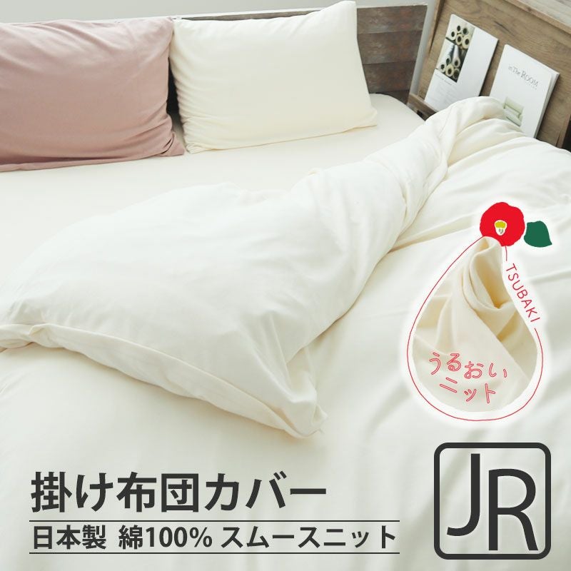 ふっくら柔らかいのびのびニット生地。綿100%で蒸れにくく、しっとりお肌にやさしいジュニア・セミシングルサイズの掛け布団カバー。日本製