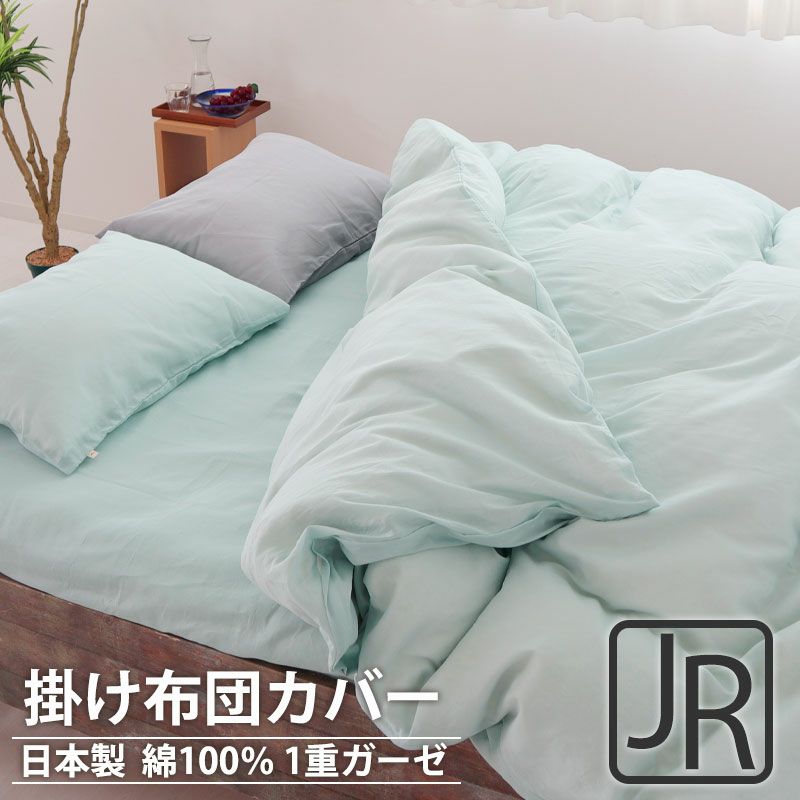 しなやかでサラッとしたやさしい肌触り。お子さまにも安心な高品質な一重ガーゼ、掛け布団カバージュニア・セミシングル。細番手オーガニックコットン100%使用で真綿布団とも相性がよく、夏だけではなく、通年快適に。日本製
