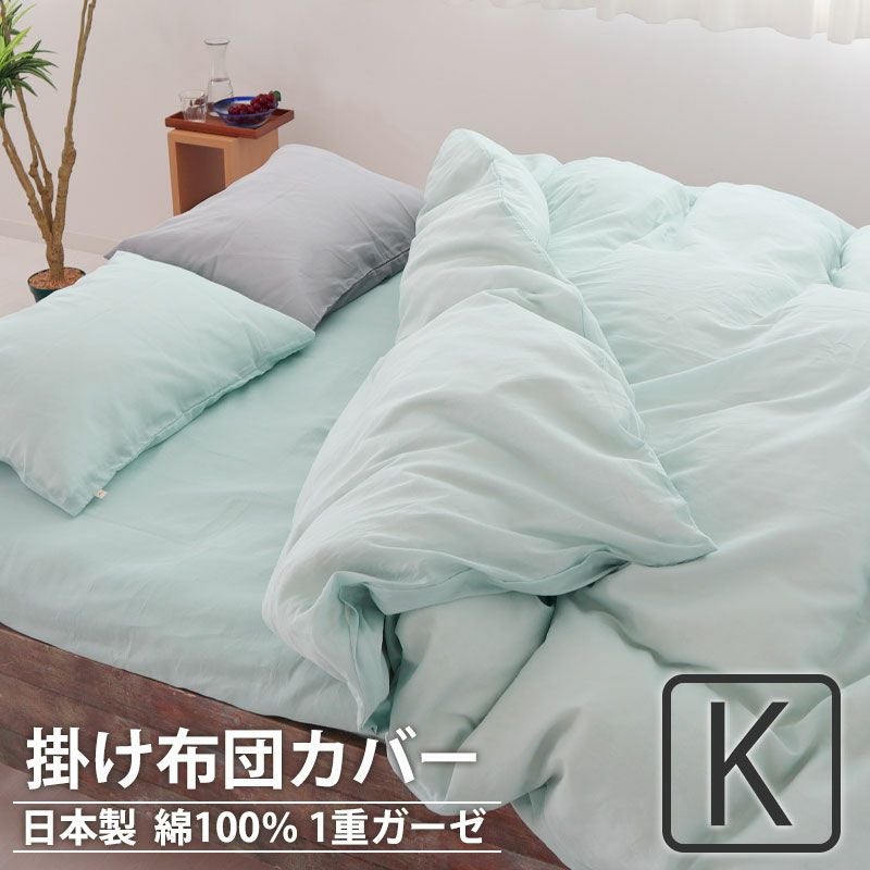 細番手のオーガニックコットン100%使用、しなやかでサラッとしたやさしい肌触りで高品質な一重ガーゼの掛け布団カバーキング。真綿布団とも相性がよく、夏だけではなく、通年快適に。日本製