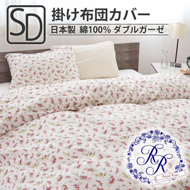 エレガントなローズ柄により寝室が一気に華やか!洗うたび、ふっくらふわふわな心地よさ!綿100%ダブルガーゼの掛け布団カバーセミダブル。日本製