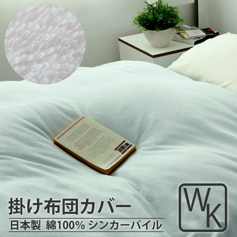 寒い冬も空気を含んであたたか、夏はサラッと優れた吸水性で快適に!オーガニックコットン100%(表地)のシンカーパイルの掛け布団カバーワイドキングサイズ。ぎゅっと抱きしめたくなるほどソフトで気持ちいい肌触り。夏や暑い季節はお布団を入れずにタオルケットとしても使える年中活躍するカバー。安心の日本製。