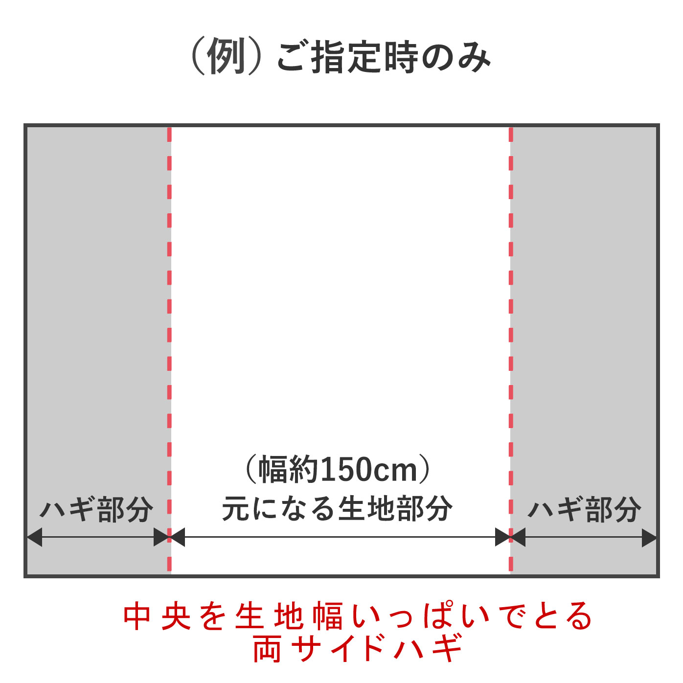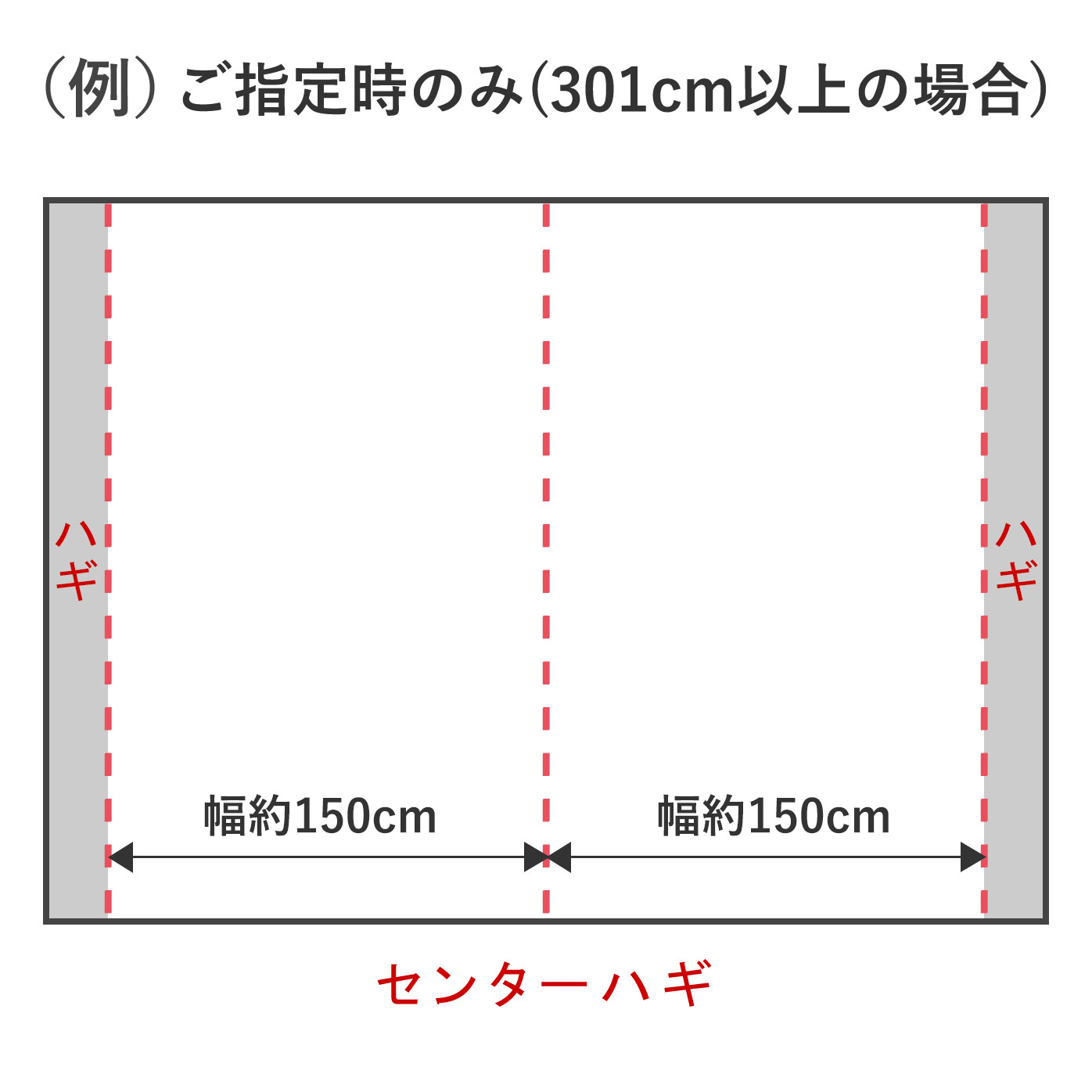 幅151cm以上のご注文の場合は、片側にハギが入ります。