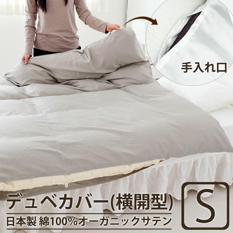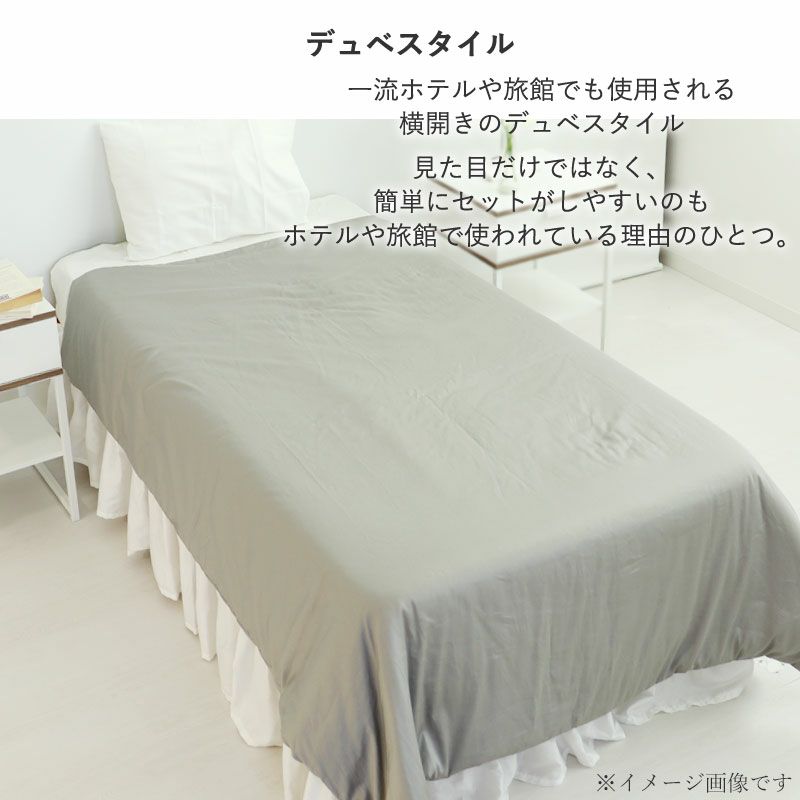 ホテルや旅館でも使用されるセットしやすい横開型のデュベカバー。艶やかさと美しい光沢のインドオーガニック超長綿サテンBijour(ビジュー)で高級感のある寝室に。超長綿100%、日本製