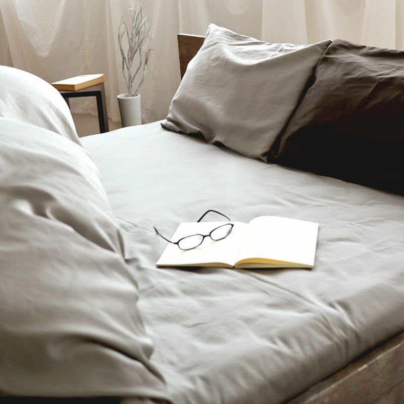 ベッドを連結して1枚のシーツで包みたい方に。まるでシルクのような光沢。オーガニックコットン、超長綿100%。日本製、インドオーガニックサテンBijour(ビジュー)ボックスシーツ