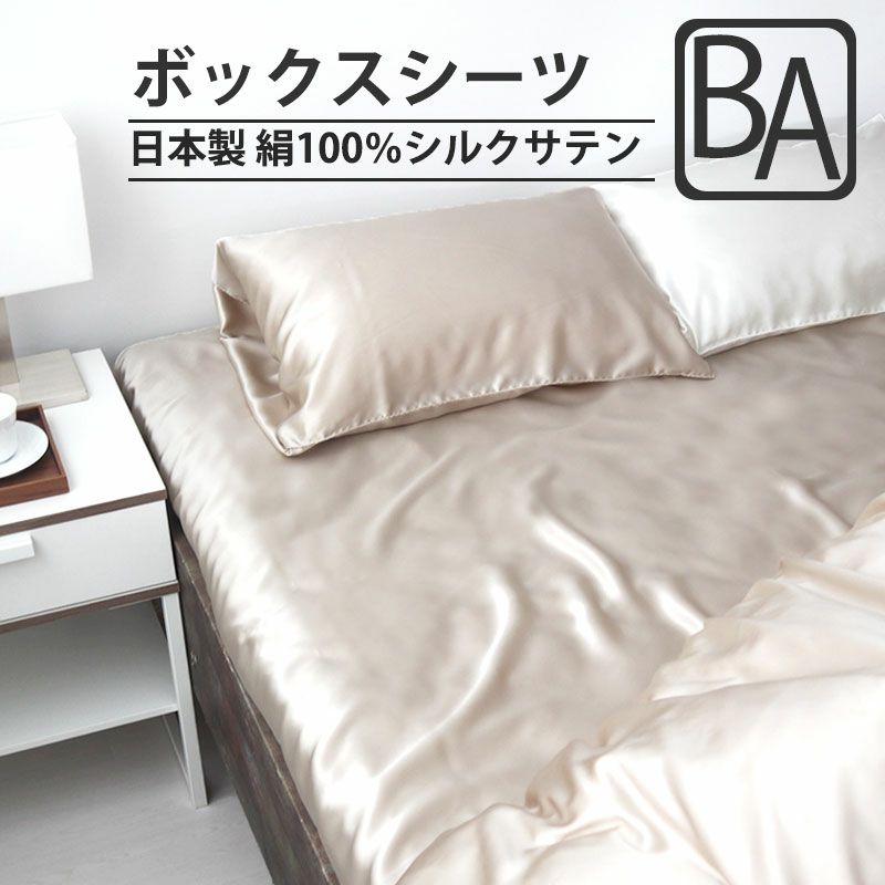 お部屋のグレードアップを極上の光沢で!毒素排出・美肌効果となめらかな肌触りが心地よいシルク絹100%サテン織の日本製、全2色ボックスシーツベビー