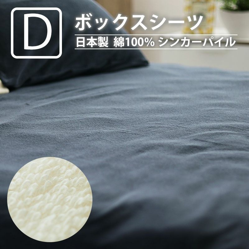 しわになりにくくお手入れカンタン!肌に当たる部分は綿100%でふんわり気持ちいい肌触りのシンカーパイルのボックスシーツダブルサイズです。ニット生地で伸縮性もよくマットレスにもフィットしやすく、他の色とも合わせやすいカラーバリエーションでコーディネートを楽しめます。安心の日本製で夏はサラッべたつかず、冬はあたたかい空気をため込むのでオールシーズン快適に。