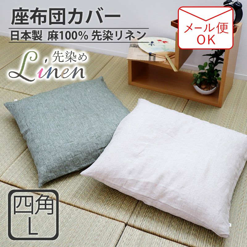 暑い夏に特におすすめ!60先染めフランスリネンのひんやり涼しい麻(リネン)100%の座布団カバーLサイズ。麻特有のシャリ感を残しつつ、クールクラッシュ加工でソフトで柔らかい仕上がりに。安心安全の日本製です!豊富なカラーバリエーションをご用意しております。
