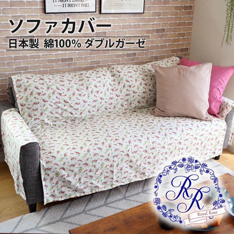掛けるだけでカンタンな一枚物なので取り替え楽々で丸洗いできないソファの汚れを防ぎます。洗うたび、ふっくらふわふわな心地よさ。エレガントなローズ柄でお部屋が一気に華やかな綿100%ダブルガーゼのソファカバー。日本製