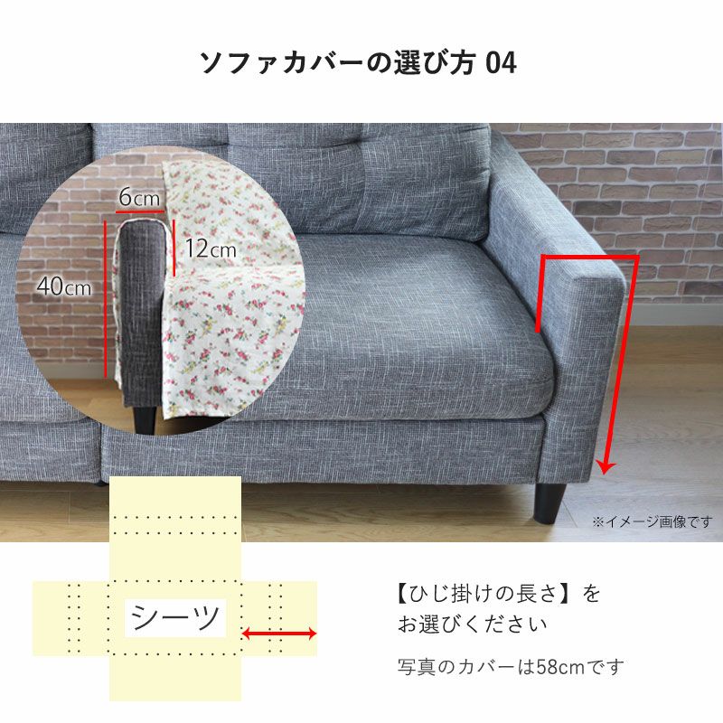 ソファのシーツの横にひじ掛け部分のカバーをお付けいたしますので、ひじ掛けの高さや厚み、外側に垂れる長さをお測り頂き、【ひじ掛けの長さ】をお選びください。