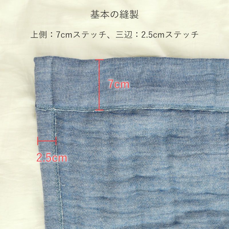 上側:7cmステッチ、三辺:2.5cmステッチ 継ぎ目は幅131cm以上から入ります |