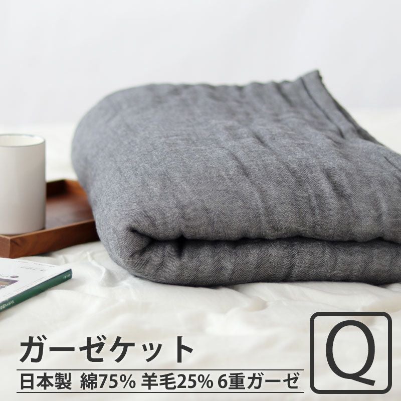 クイーンサイズのふかふか柔らかい日本製コットンウール6重ガーゼケット!洗うたびにふっくらとやさしい肌触り、蒸れにくいので1年を通して様々な使い方ができます。コットン75%ウール25%