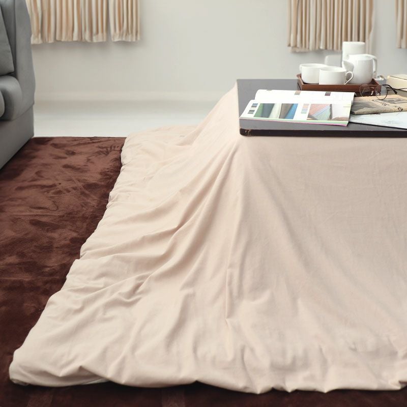 じんわりふんわり暖かい、微起毛加工のコットンフランネルこたつ布団カバー正方形タイプ。薄くて軽いのに保温性もある冬にピッタリな一枚。優しいカラーリングでお部屋にもよく馴染む♪安心の日本製 綿100%