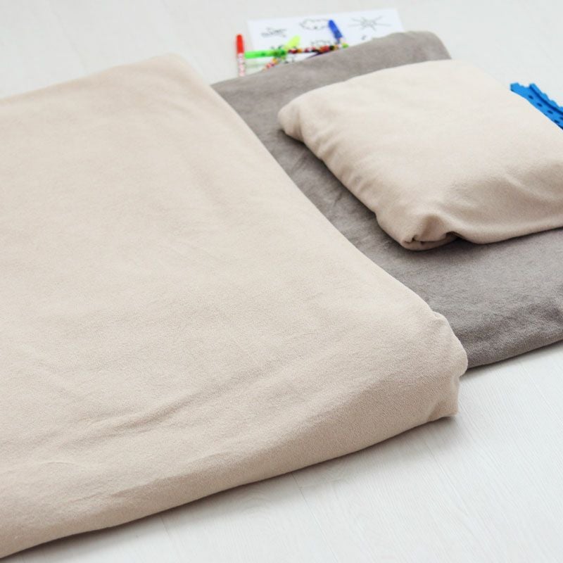 肌に当たる部分はオーガニックコットン100%で、ずっと触りたくなる柔らかくとっても気持ち良い生地。地糸はポリエステルを使用し、縮みにくく伸縮性もあり寝具にフィットしてくれます。