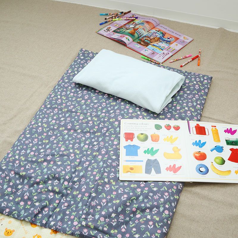 洗うたび、ふっくらふわふわ綿100%ダブルガーゼの日本製お昼寝用敷き布団カバー。かわいいお花柄がぎゅっと詰まってフレンチカジュアルなテイストで無地のカバーとのコーディネートも楽しめる!保育園からの指定に合わせて布団入れ口や縫い込み、名前布まで自由自在!