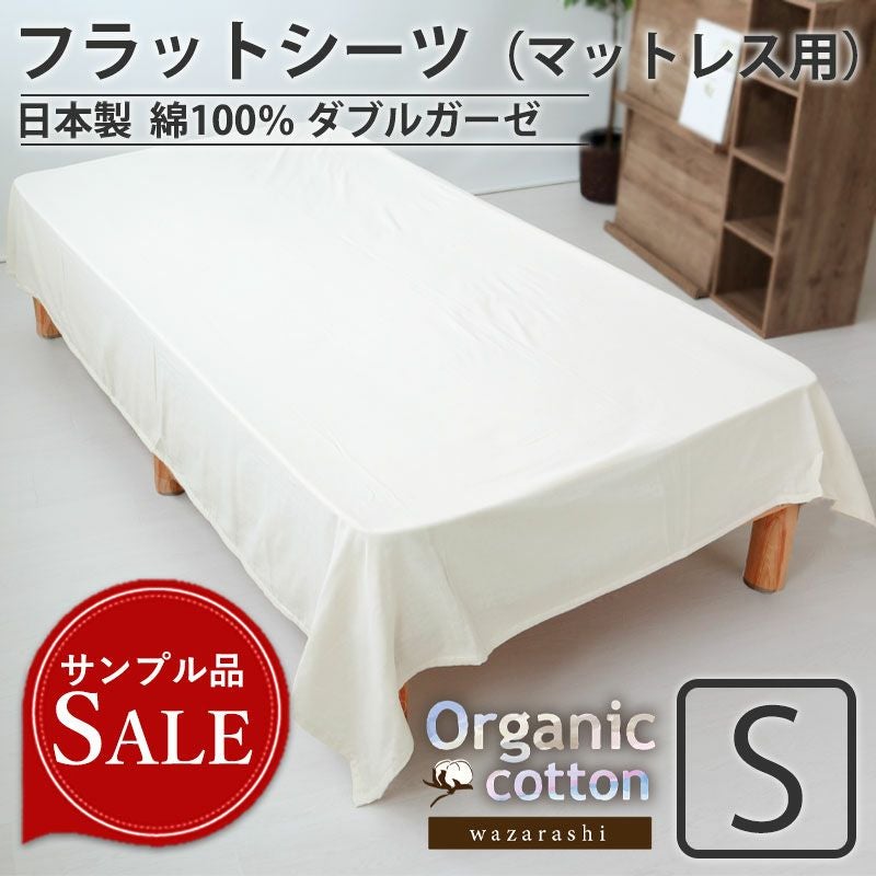 良質で安心なトルコオーガニックコットンを使用した、ダブルガーゼのフラットシーツ(ベッドマットレス用)シングルサイズのアウトレット商品。マルチカバーなど多様な使い方ができ、ふわっとやわらかな肌触りで1年を通して快適に!綿100%、日本製