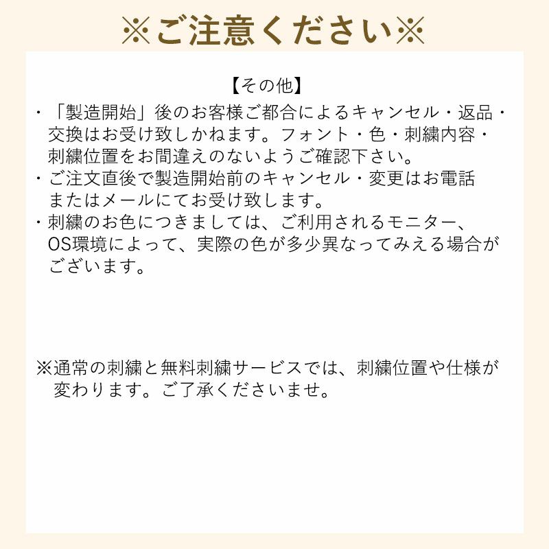 製造開始してからの、お客様ご都合によるキャンセル・返品・交換はお受け致しかねます。繊維製品の為、+1%の誤差はご了承下さいませ。