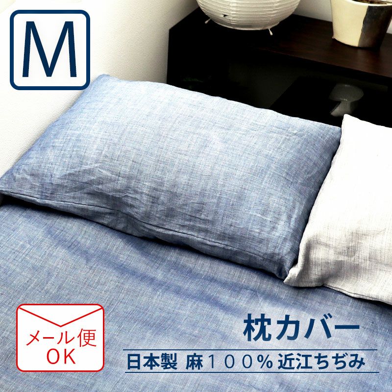 夏の定番!麻といえば近江ちぢみ麻100%の日本製 枕カバー。43×63cmなどのMサイズをサイズオーダー可能です。シボ加工で肌にはりつかない