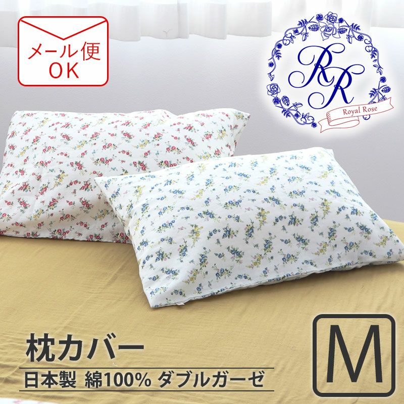 セットでも一点だけでも優美なローズ柄で寝室を華やかに。お花柄で汚れが目立ちにくく、洗うたび、ふっくらふわふわな心地よさの綿100%ダブルガーゼの枕カバーMサイズ。日本製