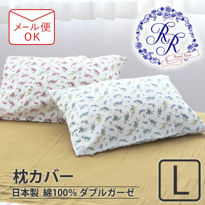 セットでも一点だけでも優美なローズ柄で華やかな寝室に変身!お花柄で汚れが目立ちにくく、洗うたび、ふっくらふわふわな心地よさ!綿100%ダブルガーゼの枕カバーLサイズ。日本製